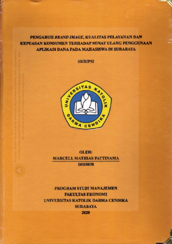 Pattinama, Marcell Mathias (2020) Pengaruh Brand Image, Kualitas Pelayanan dan Kepuasan Konsumen Terhadap Minat Ulang Penggunaan Aplikasi dana Pada Mahasiswa di Surabaya. Undergraduate thesis, Universitas Katolik Darma Cendika Fakultas Ekonomi.