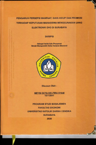 Syam, Meysi Octa Delfira (2020) Pengaruh Persepsi Manfaat, gaya Hidup dan Promosi Terhadap Keputusan Mahasiswa Menggunakan Uang Elektronik Ovo di Surabaya. Undergraduate thesis, Universitas Katolik Darma Cendika Fakultas Ekonomi.
