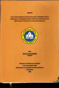 Handoko, Silviana (2020) Pengaruh Service Excellent, dan Customer Trust Terhadap Customer Satisfaction di Foodeschange Restaurant Novotel Samator Surabaya. Undergraduate thesis, Universitas Katolik Darma Cendika Fakultas Ekonomi.